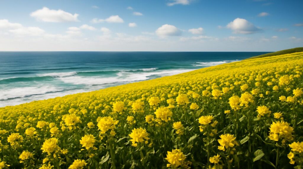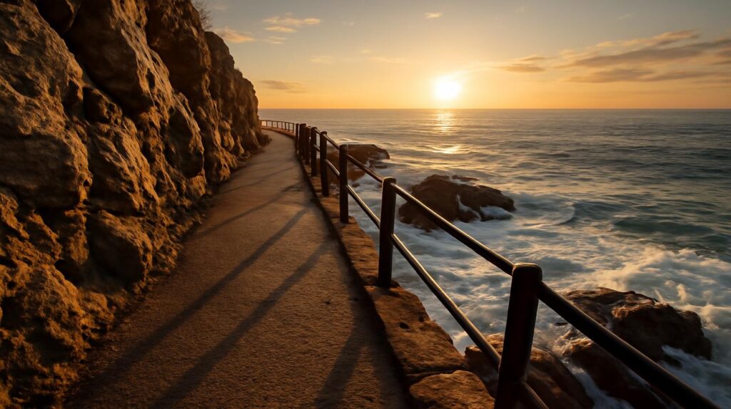 초여름의 바닷바람이 22~24°C 정도로 부드럽게 피부를 스칩니다. 파도가 부딪치는 소리와 갈매기의 울음이 섞여, 도시의 소음 대신 잔잔한 리듬을 만듭니다. 짭조름한